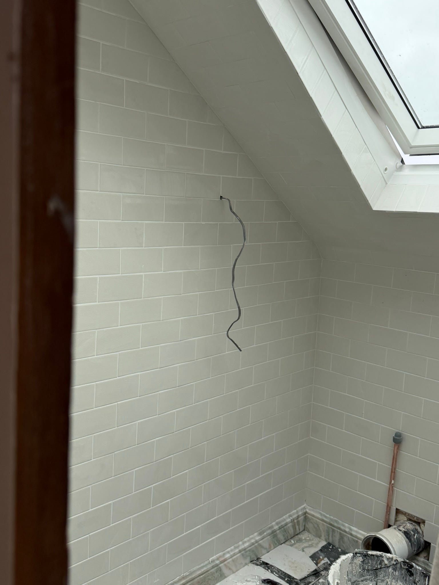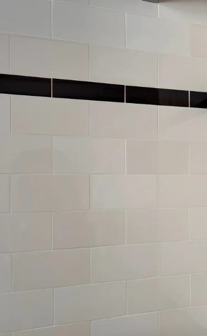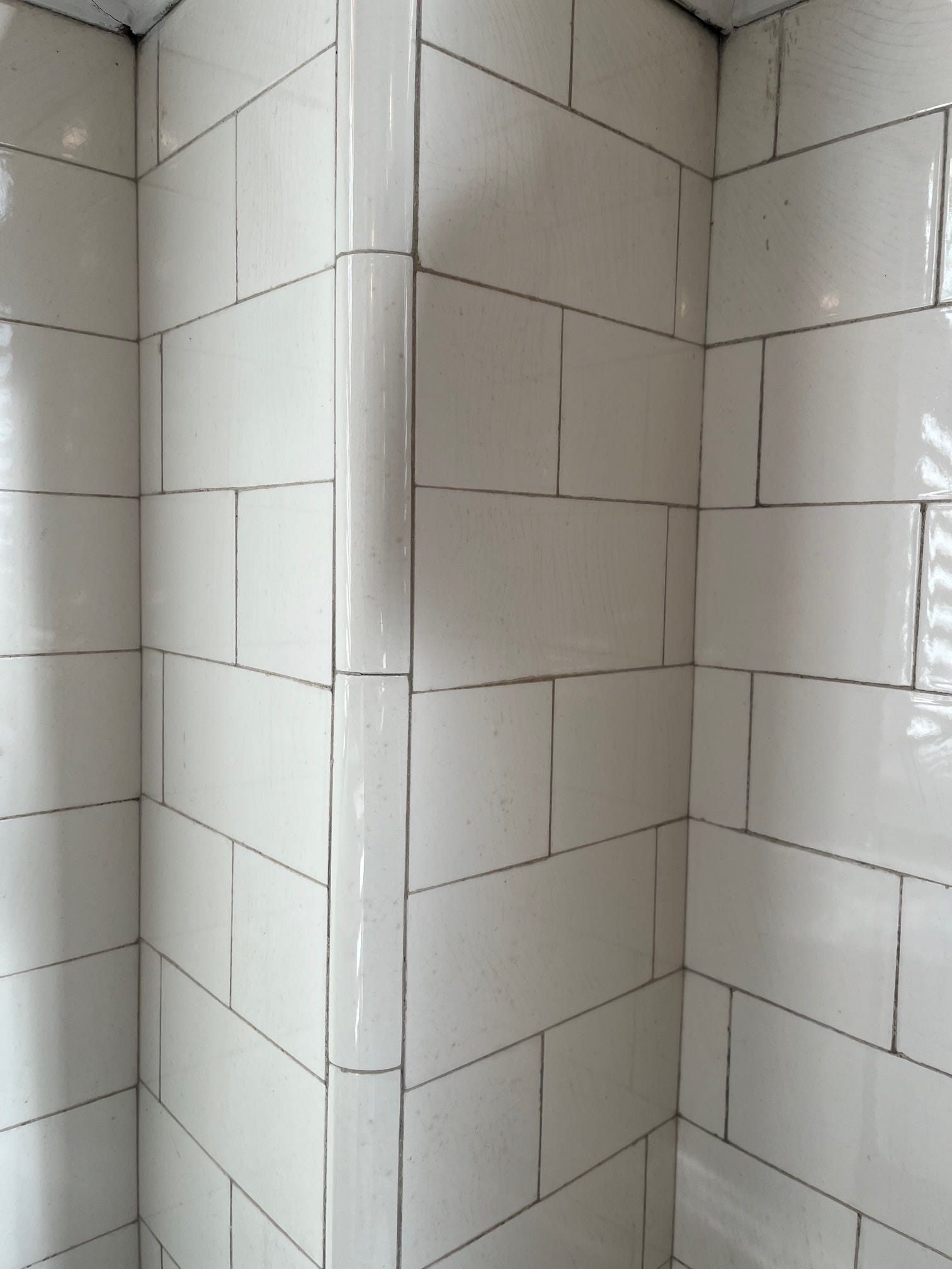 For context, I really love the look of minimally grouted tiles. I’ve long admired the original late Victorian tiles in my parents’ and in-laws’ bathrooms at home in New England: simple, glossy white subway tiles separated by only the thinnest stripe of grout. These are butt-joined tiles or butted tiling because the tiles were installed as close together as possible. It looks clean and elegant and, due to the inherent imperfection in this kind of tiling, extremely charming.